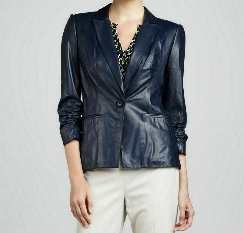 NOORA HOT! Women's Genuine Lambskin Leather Blazer Jacket Slim fit Coat WA170