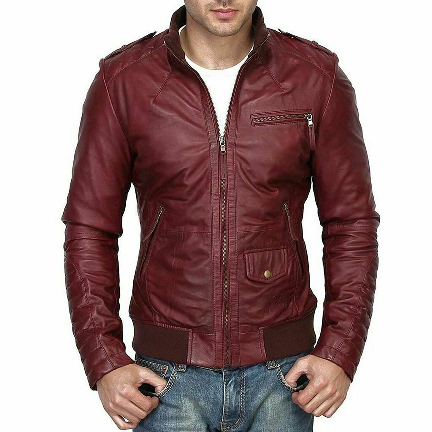 Noora New Men Lambskin Leather Maroon Jacket Modern Bikers Styles Jack – Noora International