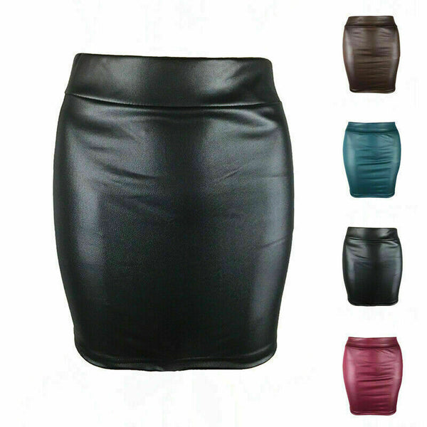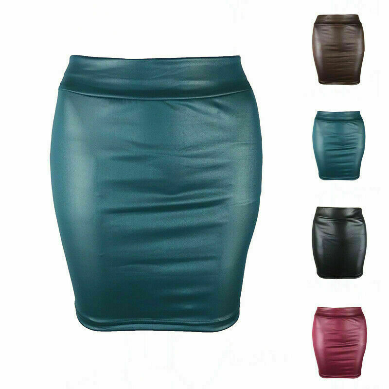 NOORA New Womens Lambskin Leather Lingerie Wet Look Shiny Tight Mini Skirt QD184