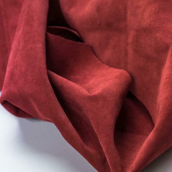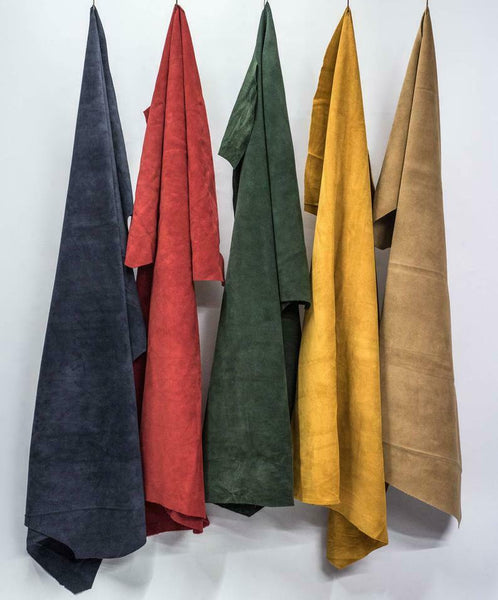 Our split suede leathers come in a variety of colors and are made from the finest quality calf skin leather. The suede is sturdy and has a thickness of 1.2mm. It is perfect for the production and creation of handmade luxury leather goods such as handbags, small leather goods, shoes, accents on clothing and garments and more.