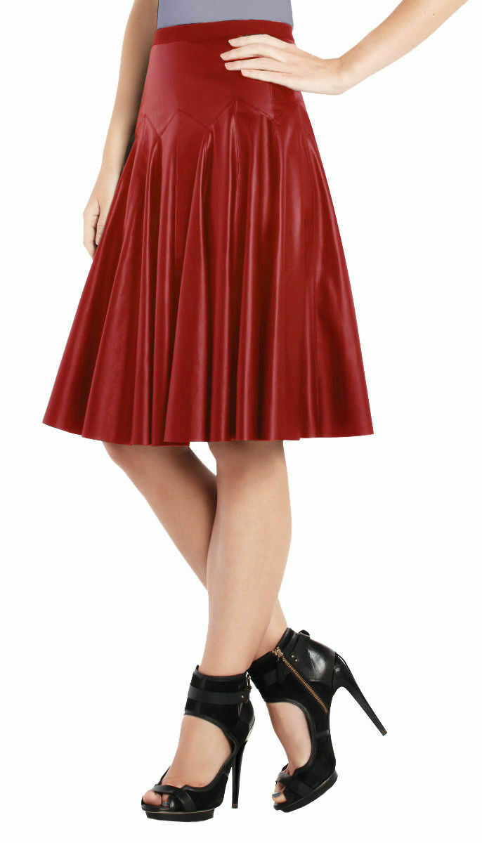 Noora Women Genuine Lambskin Red Leather Knee length Skirt Short Sexy – Noora International