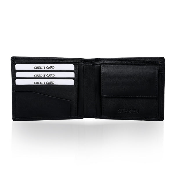 3 Cc slots, 2 compartments, 2 slip in pockets, 1 coin pockets and ID window