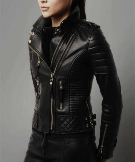 NOORA Women Lambskin Leather Black Quilted Jacket With Zipper & Pocket – Noora International