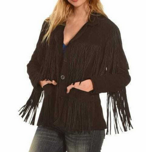 Women's Lambskin Leather Brown Suede Fringe Slim Fit Nappa Leather