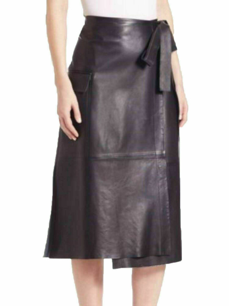 NOORA Women Leather Skirt Genuine Real Lambskin Soft Leather Below Knee Skirt SP