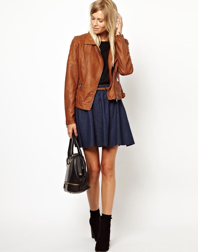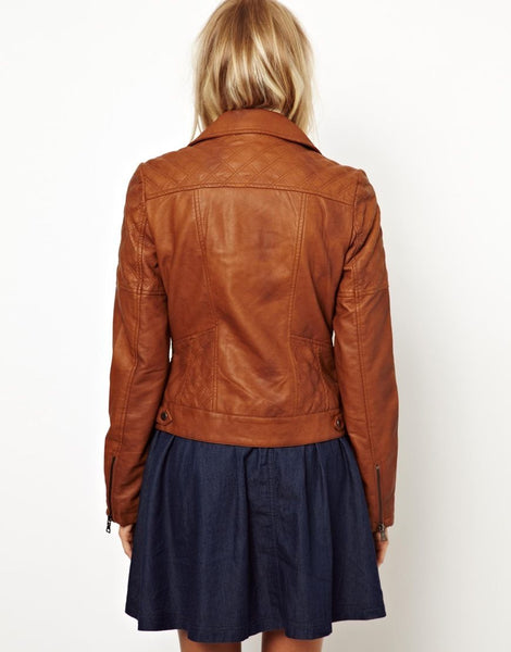 Women Asymmetrical Tan Leather Jacket.
